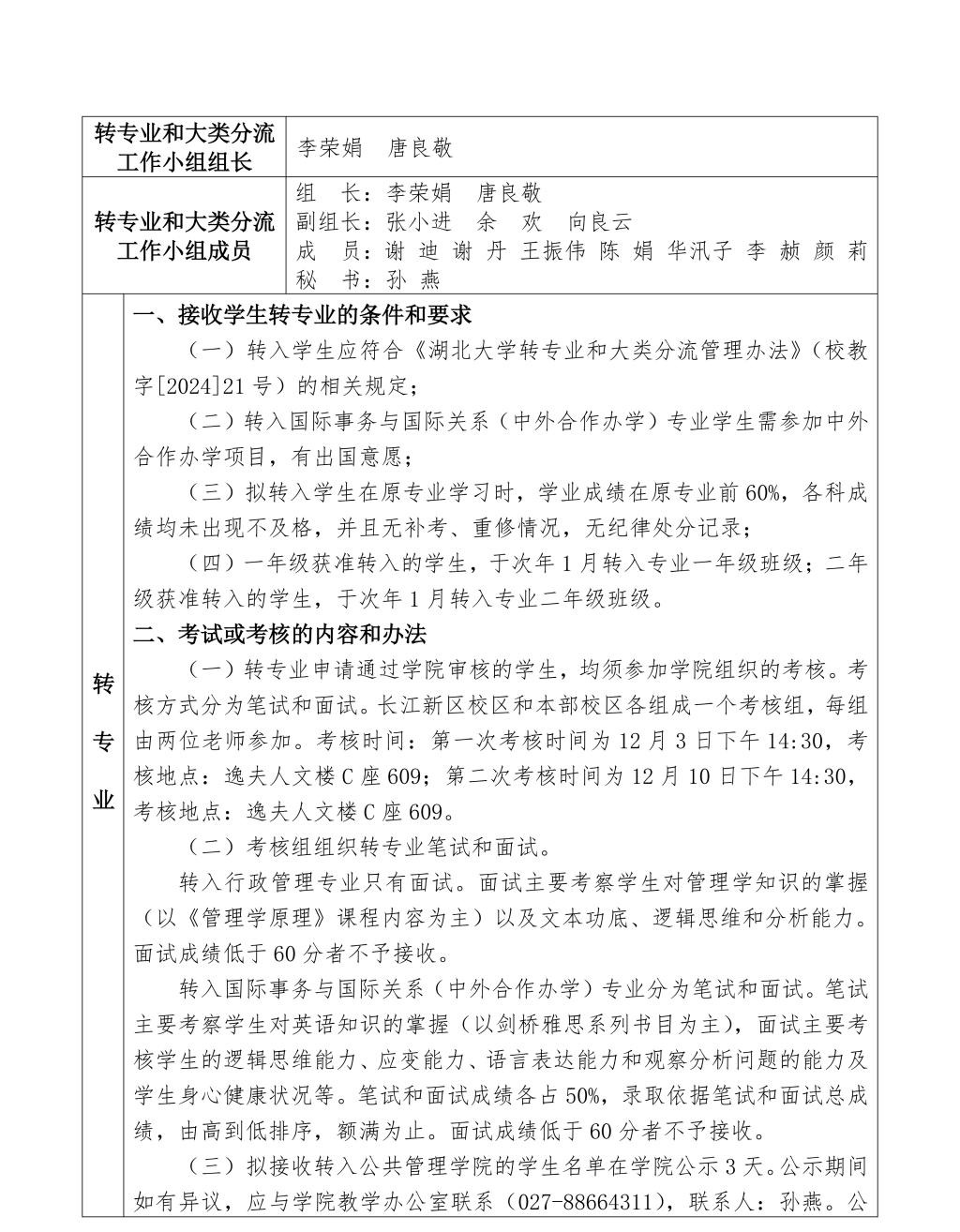 公共管理学院转专业工作方案 作者:教学办发布时间:2025年11月24日 附件【公共管理学院-附件1:学院转专业和大类分流工作方案.doc】已下载次 附件【公共管理学院-附件2:学院拟接收转专业学生计划申报表.xlsx】已下载次