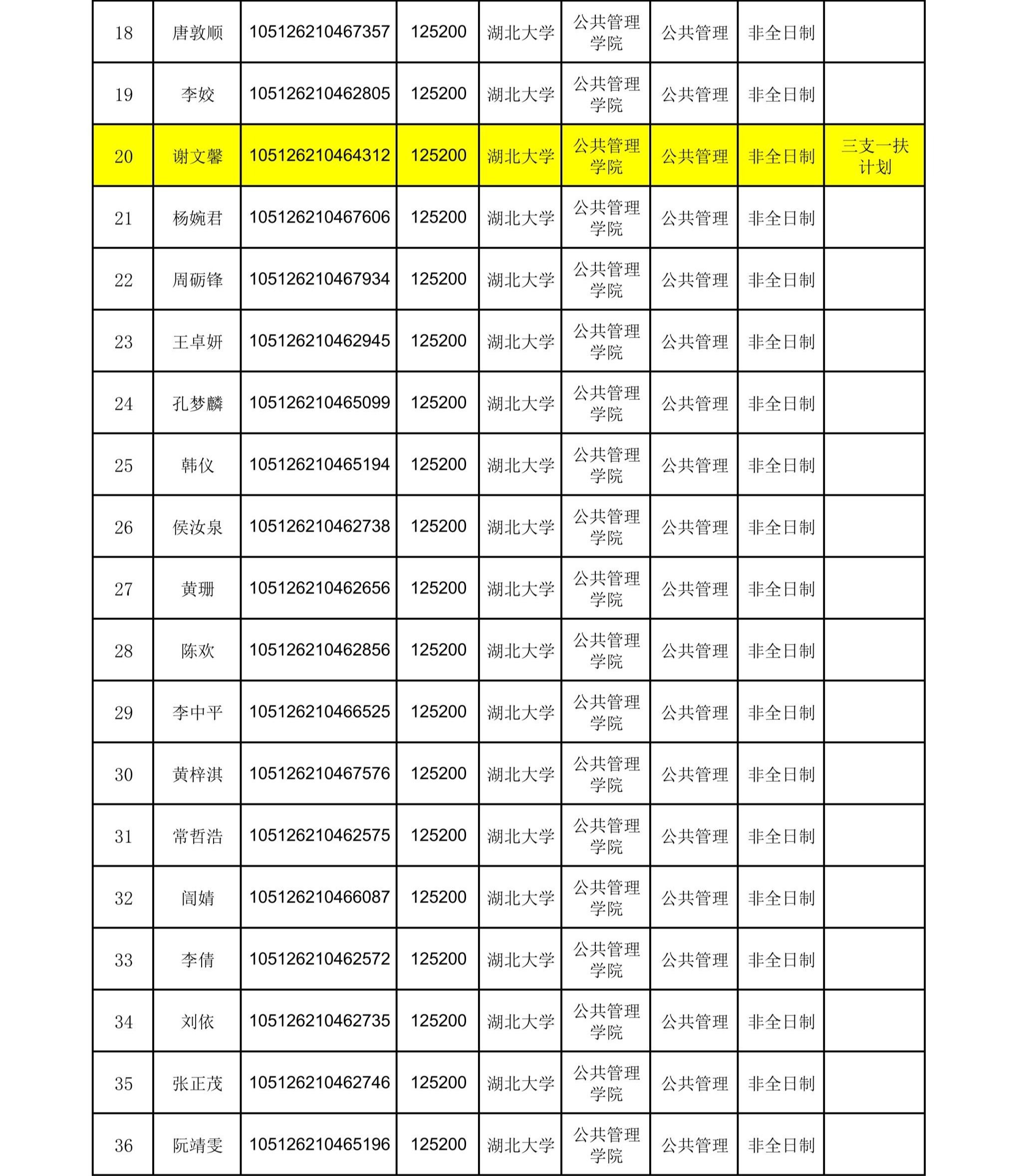 湖北大学公共管理学院2026年MPA研究生复试名单